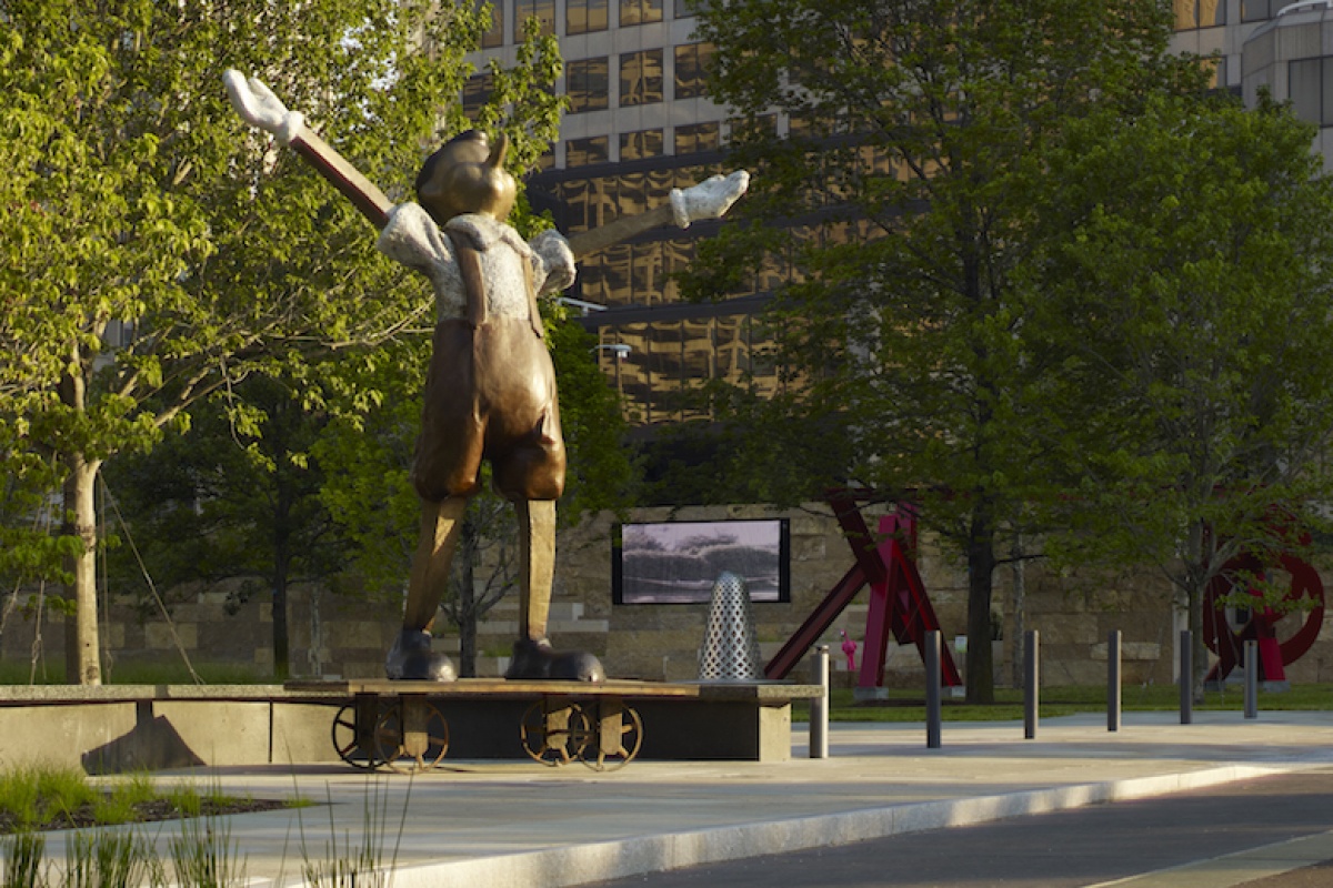 Citygarden Storytime is free and is held in the grassy area at the center of the park between two visitor favorites: Yoshitomo Nara's White Ghost and Job Kalab's Mechanical Planet.