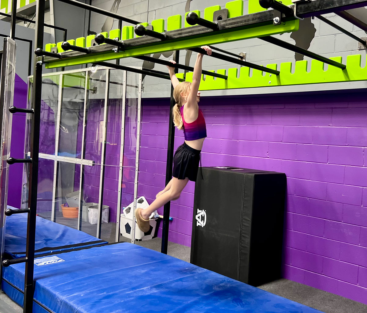 In addition to ninja training, the facility also offers Flipz!, its tumbling and trampoline program for kids in first grade and beyond who want to learn gymnastics or cross-train for ninja and other sports.